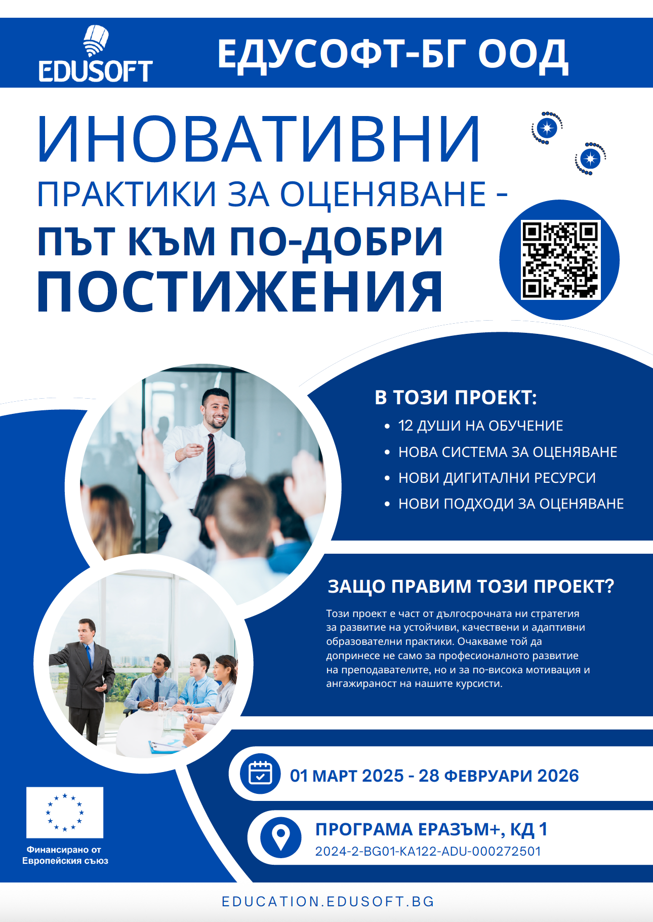 Този проект е част от дългосрочната ни стратегия за развитие на устойчиви, качествени и адаптивни образователни практики. Очакваме той да допринесе не само за професионалното развитие на преподавателите, но и за по-висока мотивация и ангажираност на нашите курсисти.